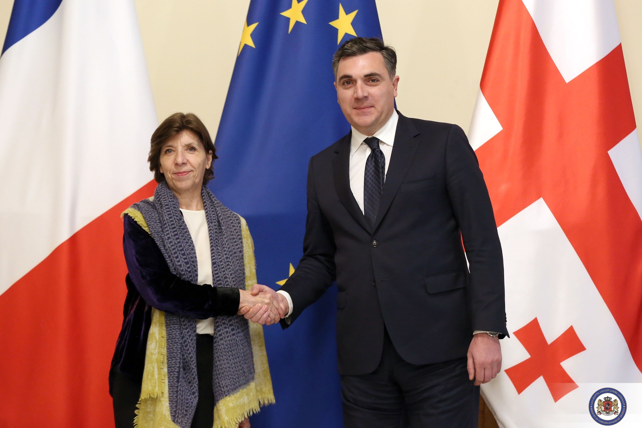 „საფრანგეთის საგარეო უწყების ხელმძღვანელის დღევანდელი ვიზიტი განსაკუთრებული მნიშვნელობის მატარებელია რამდენიმე ასპექტის გათვალისწინებით. პირველ რიგში, ვიზიტი საქართველოსა და საფრანგეთს შორის არსებული მრავალგანზომილებიანი და მჭიდრო თანამშრომლობის გამოძახილია; ამასთან, ევროპის კონტინენტზე არსებული უსაფრთხოების გამოწვევების ფონზე და საქართველოსათვის ამ მეტად მნიშვნელოვან პერიოდში, ვიზიტი საფრანგეთის გამორჩეული მეგობრობის დასტური და ძლიერი პოლიტიკური მხარდაჭერის გამოხატულებაა“ - ამის შესახებ საგარეო საქმეთა მინისტრმა, ილია დარჩიაშვილმა საფრანგეთის რესპუბლიკის ევროპისა და საგარეო საქმეთა მინისტრთან, კატრინ კოლონასთან შეხვედრის შემდგომ გამართულ ერთობლივ პრესკონფერენციაზე განაცხადა.
