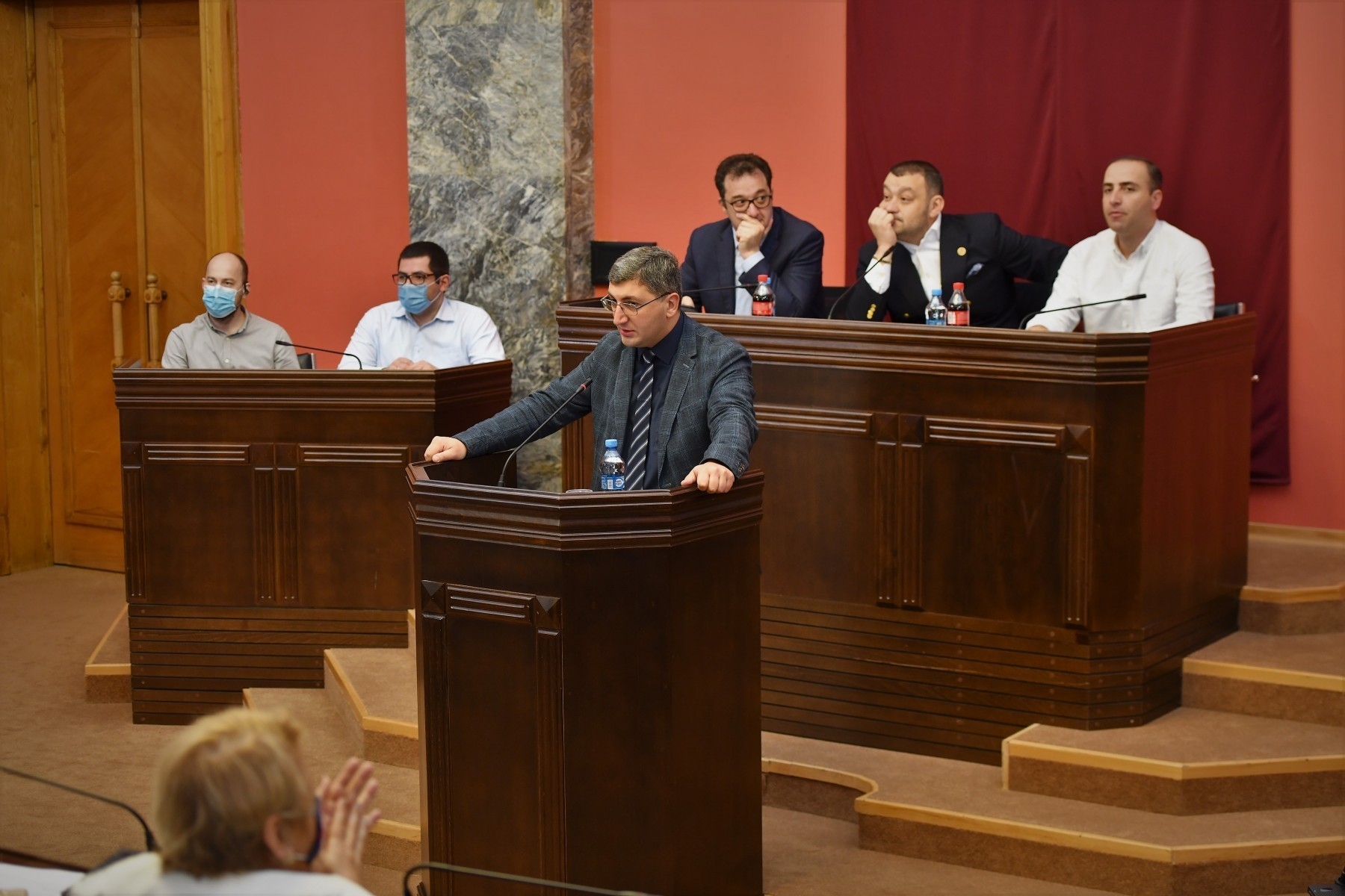 სამი კომიტეტის გაერთიანებულ სხდომაზე 2020 წლის ანტიკრიზისული ბიუჯეტის პროექტი ფინანსთა მინისტრის მოადგილემ გიორგი კაკაურიძემ წარადგინა.