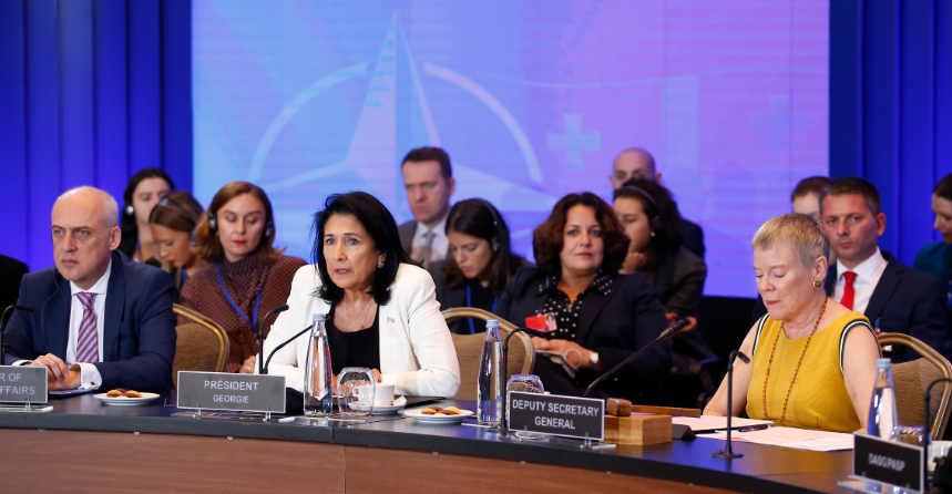 საქართველოს პრეზიდენტი სალომე ზურაბიშვილი ბათუმში ვიზიტად მყოფ ჩრდილოატლანტიკური საბჭოს შეხვდა და ნატოს წევრი ქვეყნების წარმომადგენლებს სიტყვით მიმართა.