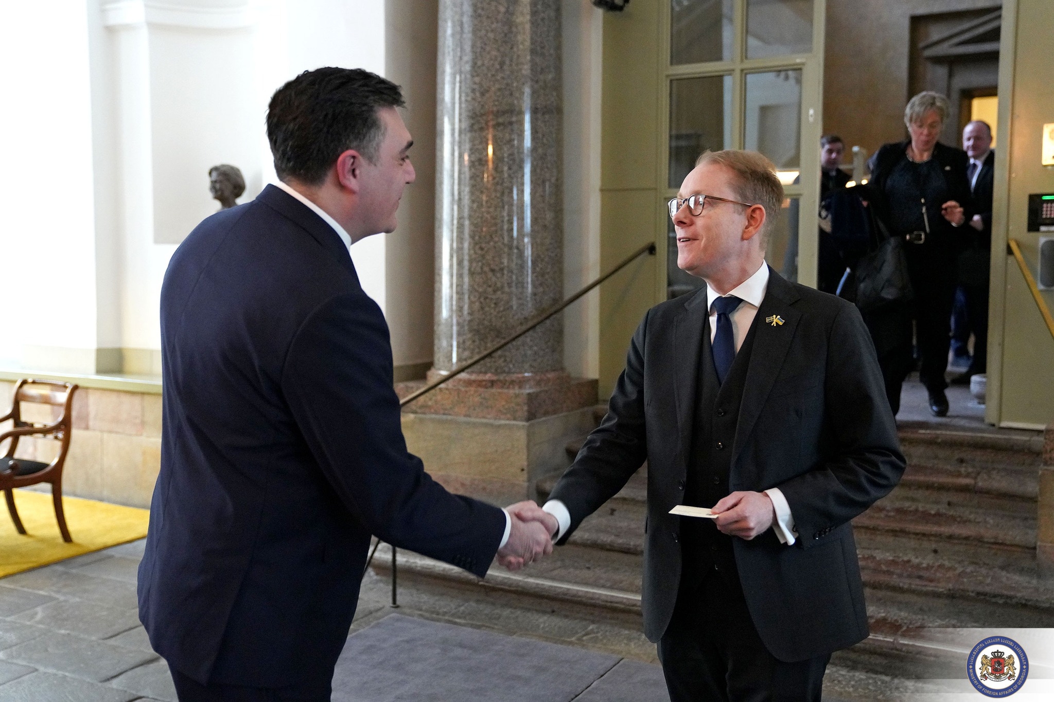 შვედეთის სამეფოში ვიზიტის ფარგლებში, საქართველოს საგარეო საქმეთა მინისტრს შვედმა კოლეგამ უმასპინძლა. საქართველოს საგარეო უწყების ინფორმაციით, ილია დარჩიაშვილმა და ტობიას ბილსტრომმა მიმოიხილეს ორ ქვეყანას შორის არსებული მჭიდრო მეგობრული ურთიერთობები, თანამშრომლობის მიმდინარე დღის წესრიგი და მისი გაღრმავების შესაძლებლობები.
