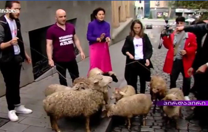 აქცია „სირცხვილიას“ მონაწილეებმა პარლამენტთან ცხვრები მიიყვანეს და ასე გამოხატეს უმაღლეს საკანონმდებლო ორგანოში მიმდინარე ახალი მინისტრთა კაბინეტის დამტკიცების პროცესი.
