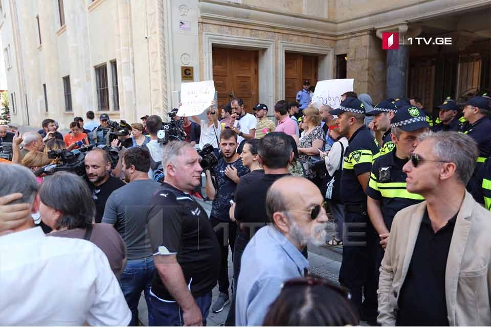 პარლამენტის შენობის შესასვლელებთან მოძრაობა „სირცხვილიას“ წევრები პრემიერ მინისტრად გიორგი გახარიას კანდიდატურის დასახელებას აპროტესტებენ.