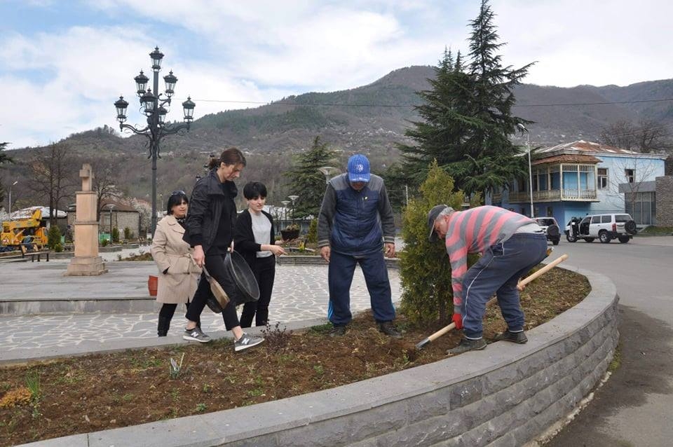 გაზაფხულის დადგომასთან დაკავშირებით, ქალაქ ონის ტერიტორიაზე სკვერების გამწვანებისა და კეთილმოწყობის სამუშაოები გრძელდება.