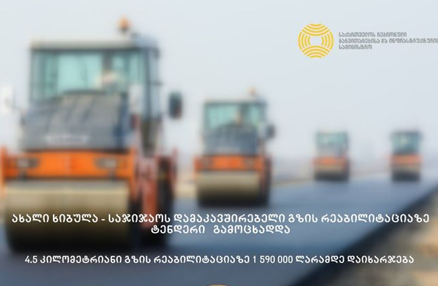 ხობის მუნიციპალიტეტის მერიამ ახალი ხიბულა-საჯიჯაოს დამაკავშირებელი გზის რეაბილიტაციაზე ტენდერი გამოაცხადა.