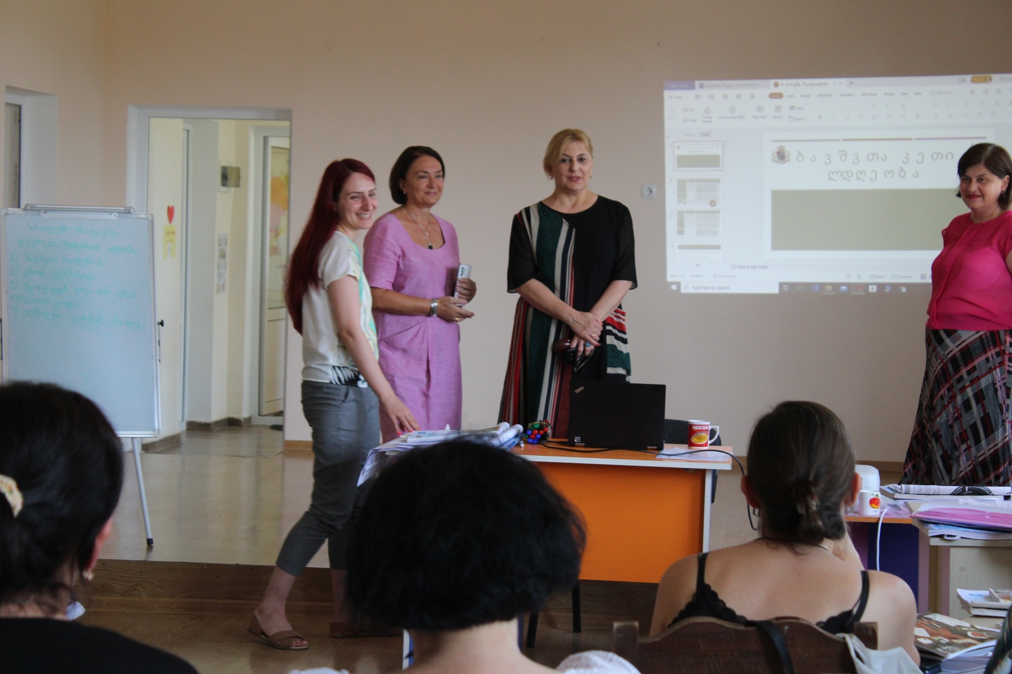 ხონის მუნიციპალიტეტის მერის მოადგილე მანანა გოფოძე და მერიის კულტურის, განათლების, სორტისა და ახალგაზრდობის სამსახურის ხელმძღვანელი მარიკა რუხაძე სკოლამდელი დაწესებულებების აღმზრდელ-პედაგოგთა გადამზადების პროცესს ადგილზე გაეცნენ.