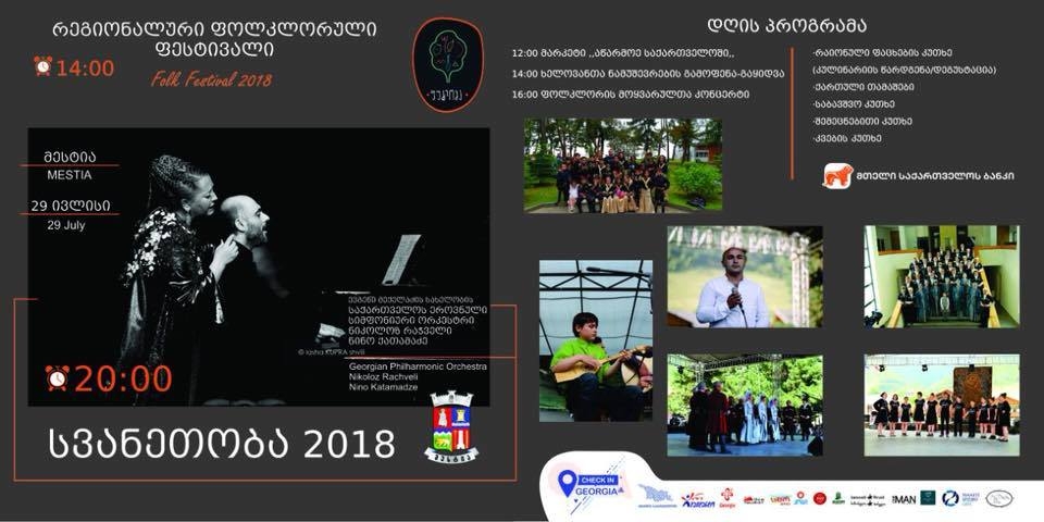 29 ივლისს, მესტიაში ფესტივალი „სვანეთობა 2018“-ის ფარგლებში რეგიონული ფოლკლორული ღონისძიება „ფუძეობა“ გაიმართება, რომლის მიზანია საქართველოს რეგიონალური კულტურის განვითარების ხელშეწყობა და მხარდაჭერა.