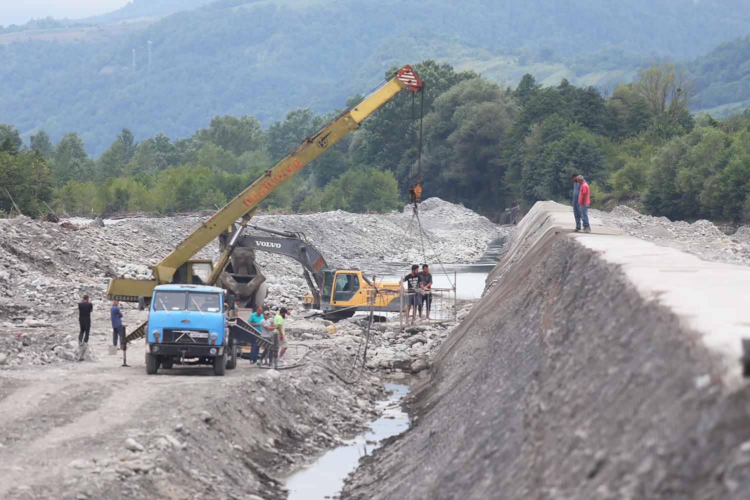 ამბროლაურში მშენებარე აეროპორტის ასაფრენი ბილიკის მიმდებარედ, მდინარე რიონის ჭალა-კალაპოტის გამაგრებით სამუშაოები მიმდინარეობს.