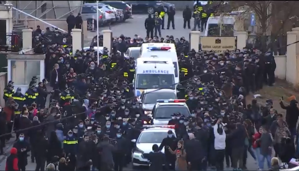 საქართველოს ყოფილი პრეზიდენტი მიხეილ სააკაშვილი გორის სამხედრო ჰოსპიტალიდან თბილისის საქალაქო სასამართლოში, პროცესზე დასასწრებად უკვე მიიყვანეს. პენიტენციური სამსახურის ავტომობილები სპეცრაზმის თანხლებით სასამართლოს ეზოში ცოტა ხნის წინ შევიდნენ.