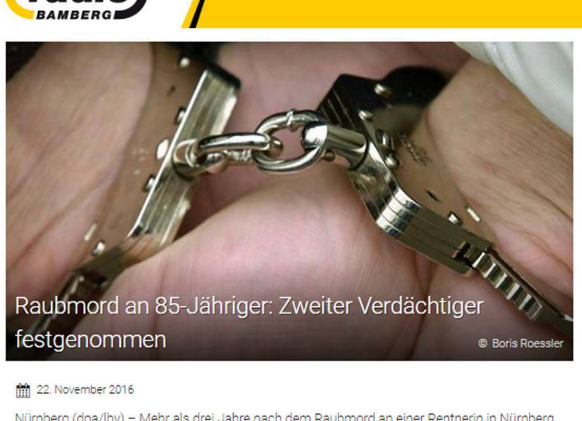 გერმანული მედიასაშუალებები, საქართველოსა და გერმანიის შინაგან საქმეთა სამინისტროების მიერ განხორციელებული, ერთობლივი, მასშტაბური ღონისძიებების შედეგად, 2013 წელს ნიურნბერგში მომხდარ მკვლელობაში ბრალდებული პირის თბილისში დაკავების შესახებ ინფორმაციას ავრცელებენ.