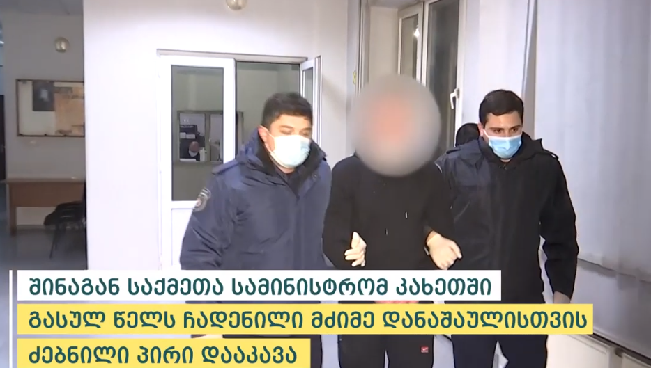 შინაგან საქმეთა სამინისტროს კახეთის პოლიციის დეპარტამენტის თანამშრომლებმა, ჩატარებული საგამოძიებო, ოპერატიული და სამძებრო ღონისძიებების შედეგად, ჯანმრთელობის განზრახ მძიმე დაზიანების ბრალდებით ძებნილი პირი - 1988 წელს დაბადებული გ.ი. დააკავეს, - ინფორმაციას შსს ავრცელებს.