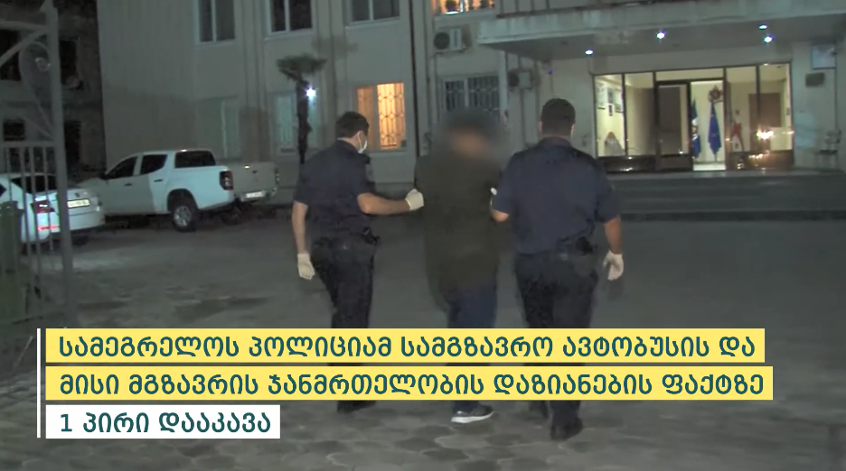 შინაგან საქმეთა სამინისტროს სამეგრელო-ზემო სვანეთის პოლიციის დეპარტამენტის თანამშრომლებმა, ჩატარებული ოპერატიულ-საგამოძიებო ღონისძიებების შედეგად, სამგზავრო ავტობუსის და მასში მყოფი ერთ-ერთი მგზავრის ჯანმრთელობის დაზიანების ბრალდებით, 1 პირი -1974 წელს დაბადებული გ.ჯ. დააკავეს. ინფორმაციას შსს ავრცელებს.