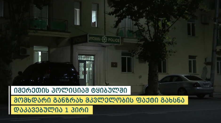 შინაგან საქმეთა სამინისტროს იმერეთის, რაჭა-ლეჩხუმისა და ქვემო სვანეთის პოლიციის დეპარტამენტის თანამშრომლებმა, გატარებული ოპერატიული და საგამოძიებო მოქმედებების შედეგად, ტყიბულში 9 აგვისტოს მომხდარი განზრახ მკვლელობის ფაქტი გახსნეს. დაკავებულია, წარსულში ყაჩაღობისა და ძალადობისათვის ნასამართლევი - 1986 წელს დაბადებული ზ.ჩ.