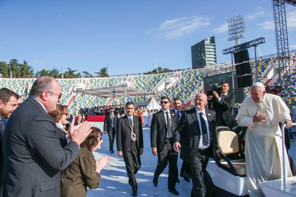 საქართველოს პრეზიდენტი გიორგი მარგველაშვილი წმინდა წირვას დაესწრო, რომელიც რომის პაპმა თბილისში, მიხელ მესხის სახელობის სტადიონზე აღავლინა.