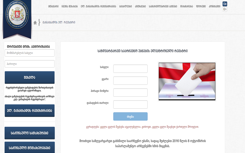 საგარეო საქმეთა სამინისტროს საკონსულო დეპარტამენტმა უცხოეთში მყოფი საქართველოს მოქალაქეებისთვის საარჩევნო უბნების ელექტრონული რეესტრი შექმნა. ელექტრონული სისტემა უცხოეთში საკონსულო აღრიცხვაზე მყოფ ამომრჩევლებს საშუალებას აძლევს მოიძიონ ინფორმაცია.