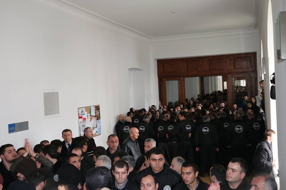 ივ. ჯავახიშვილის სახელობის თბილისის სახელმწიფო უნივერსიტეტში დაძაბული მდგომარებაა. თვითმმართველობის წევრები რექტორის კაბინეტში შეჭრას ცდილობენ. ადგილი აქვს სტუდენტებსა და დაცვის თანამშრომლებს შორის შეხლა-შემოხლას.