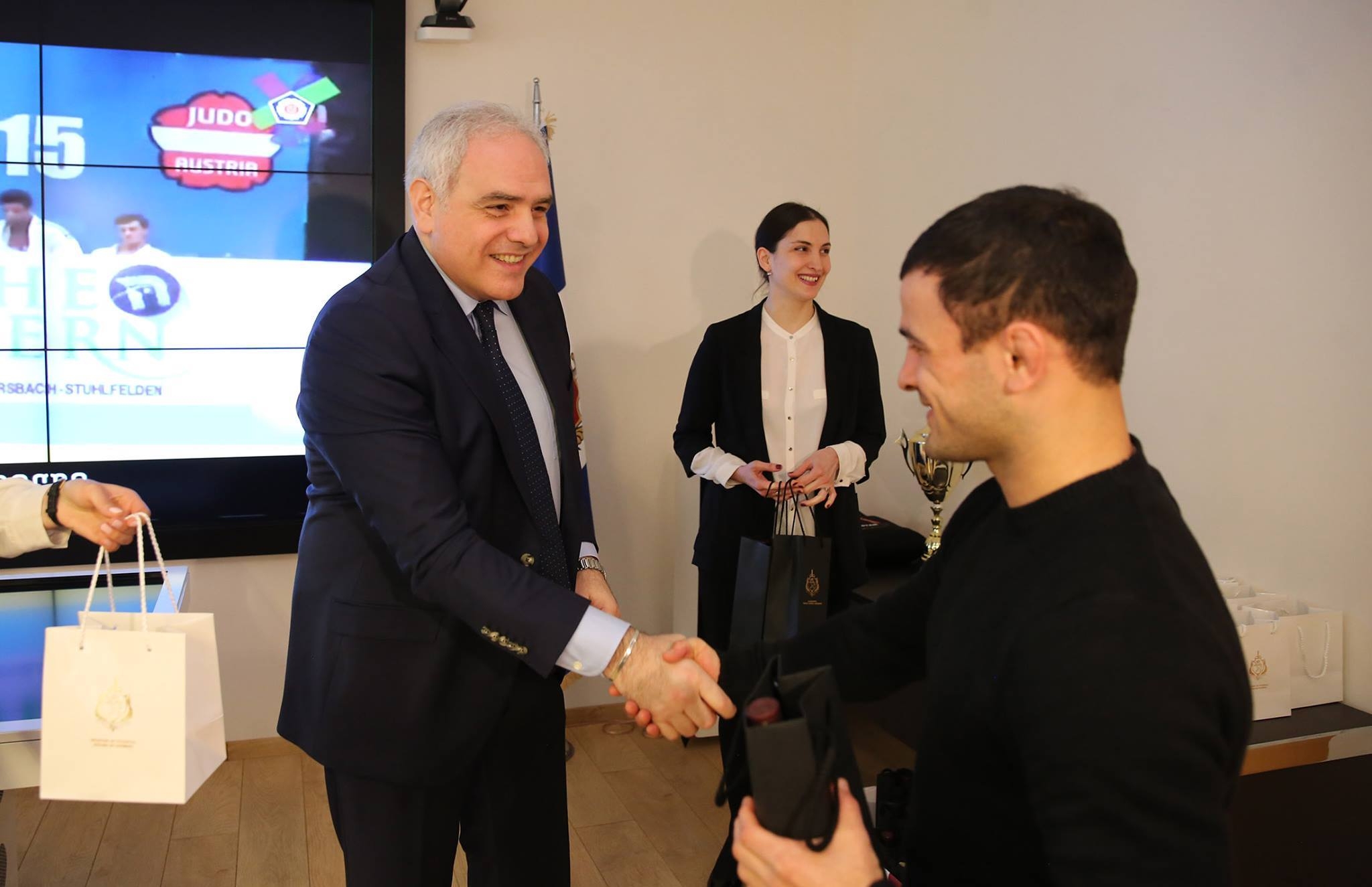 შინაგან საქმეთა მინისტრი გიორგი მღებრიშვილი შსს-ს ძიუდოს სპორტული კლუბი „მებრძოლის“ წევრებს შეხვდა. კლუბის წევრებმა, საქართველოს ნაკრების სახელით, რამდენიმე დღის წინ პარიზის პრესტიჟულ ტურნირში „გრან სლემი“ ოქროს და ბრინჯაოს მედლები მოიპოვეს.