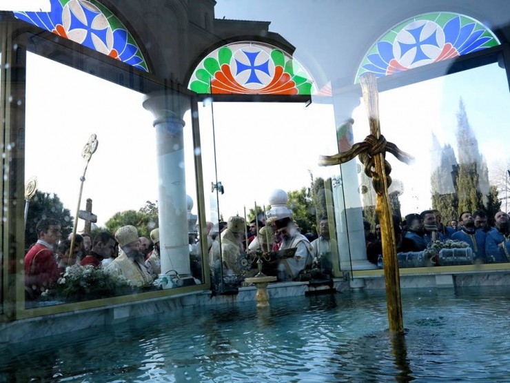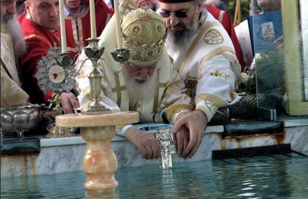 ყოვლადწმინდა სამების საკათედრო ტაძრის ეზოში არსებულ დიდ აიაზმაში ამ წუთებში წყლის კურთხევა მიმდინარეობს.