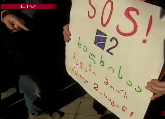 თბილისის საქალაქო სასამართლოსთან "რუსთავი 2"-ის მხარდამჭერების აქცია გრძელდება. აქციაზე ტელეკომპანიის ცნობილი სახეები და მოქალაქეები არიან შეკრებილები. აქციის მონაწილეებს ცოტა ხნის წინათ სიტყვით მიმართა ტელეკომპანი "რუსთავი 2-ის გენერალურმა დირექტორმა ნიკა გვარამიამ.