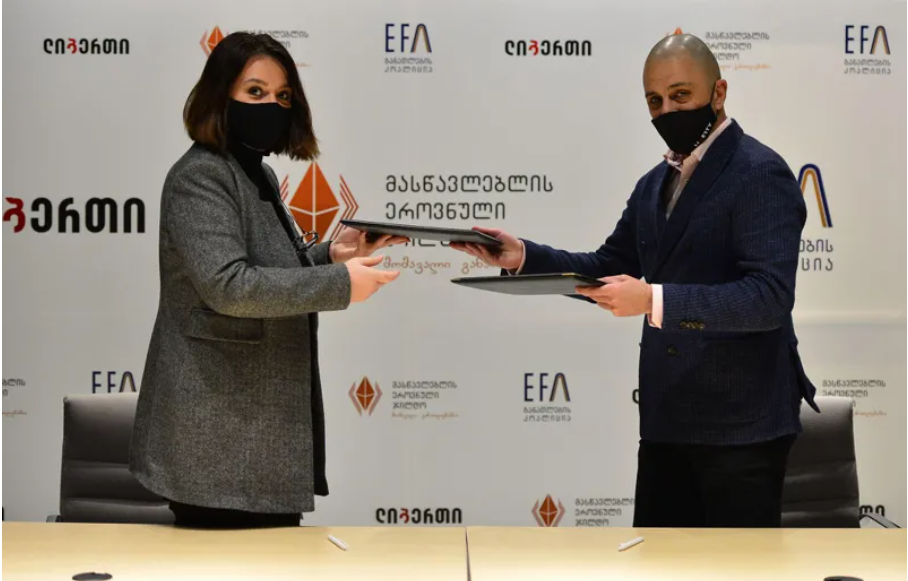 მასწავლებლის ეროვნული ჯილდოს მხარდაჭერის მიზნით ხუთი წლის ვადით განათლების კოალიციასა და ლიბერთი ბანკს შორის ურთიერთთანამშრომლობის მემორანდუმი გაფორმდა. შეთანხმებას ხელი განათლების კოალიციის გამგეობის თავმჯდომარემ, ირინა ხანთაძემ და ლიბერთი ბანკის გენერალურმა დირექტორმა, ვასილ ხოდელმა მოაწერეს.