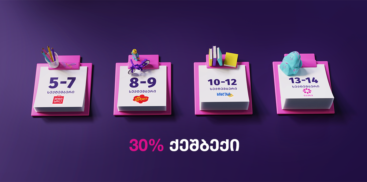 ლიბერთის ლოიალობის პროგრამა„ქეშბექი“,5 სექტემბრიდან 14 სექტემბრამდე წინასასკოლო აქციას აანონსებს, რაც გულისხმობს რომ ლიბერთის მომხმარებლებს„ქეშბექი“-ს პარტნიორობიექტებშიშეძენისას ყველაზე მაღალიქეშბექი, გადახდილი თანხის 30%,მომენტალურადდაუბრუნდებათ.
