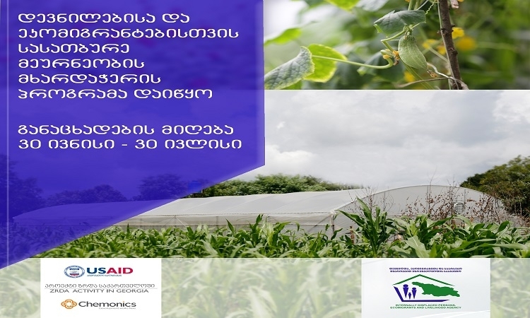 დევნილთა, ეკომიგრანტთა და საარსებო წყაროებით უზრუნველყოფის სააგენტომ „სასათბურე მეურნეობის მხარდაჭერის საგრანტო პროგრამის“ ფარგლებში, იძულებით გადაადგილებული პირების განაცხადების მიღება დაიწყო.