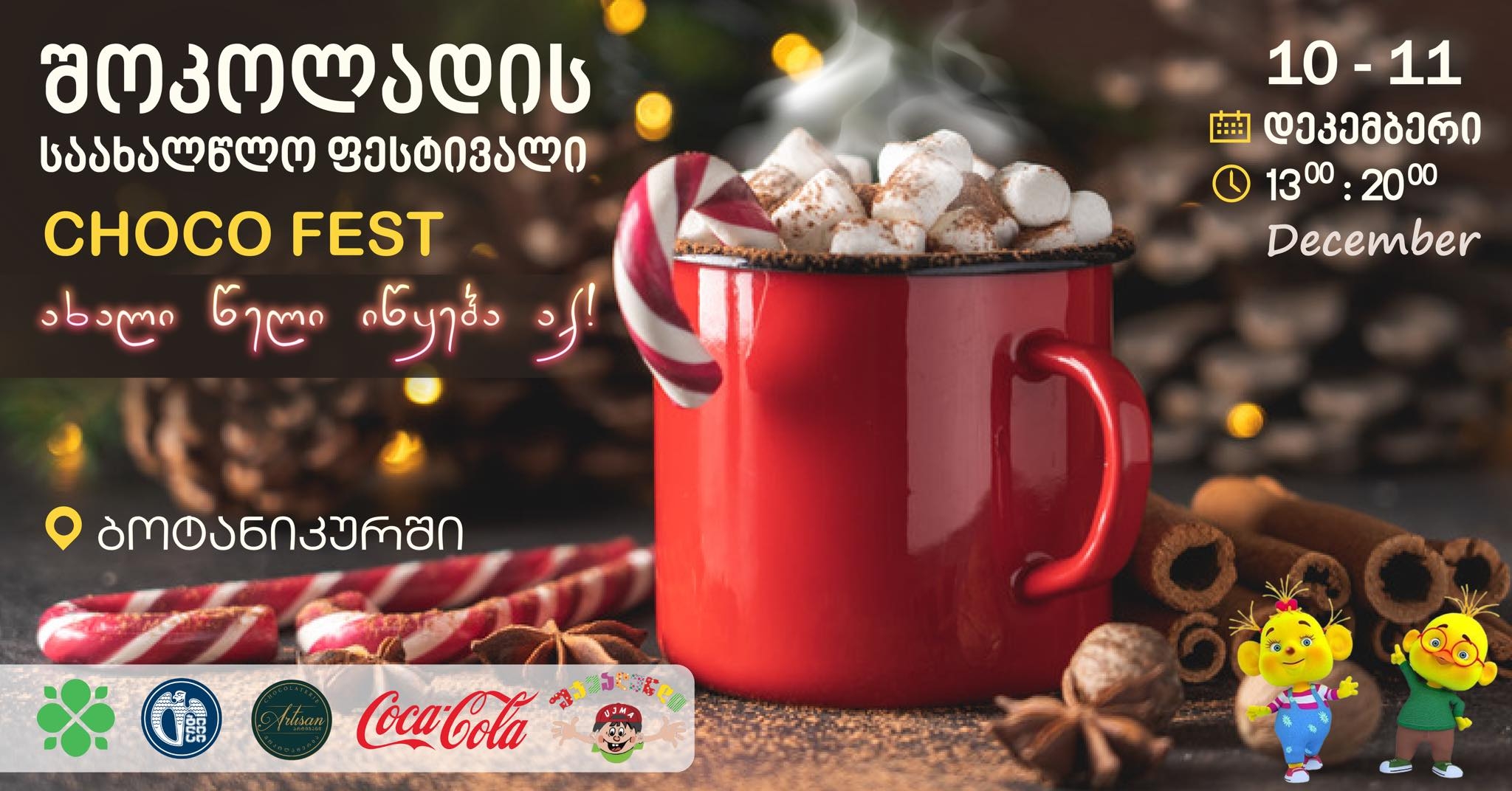 საქართველოს ეროვნულ ბოტანიკურ ბაღში 10 და 11 დეკემბერს შოკოლადის საახალწლო ფესტივალი გაიმართება.ღონისძიებაზე წარმოდგენილი იქნება საქართველოში წარმოებული ხელნაკეთი შოკოლადების მრავალფეროვნება, საახალწლო ხელნაკეთი ნივთები და თემატური დეკორაციები.