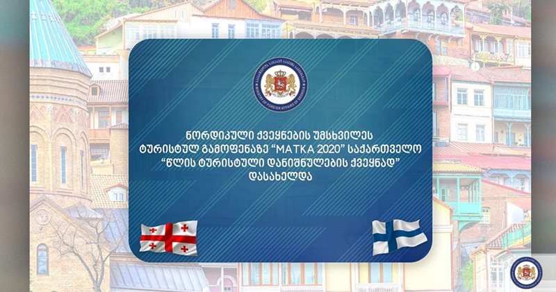 ფინეთის დედაქალაქ ჰელსინკიში გამართულ ნორდიკულ ქვეყნებში უმსხვილეს საერთაშორისო ტურისტულ გამოფენა-ბაზრობაზე “MATKA 2020” საქართველო “წლის ტურისტული დანიშნულების ქვეყნად” დასახელდა. მნიშვნელოვანია, რომ გამოფენის სამიზნე ბაზარი მოიცავს არა მხოლოდ ფინეთის ტურისტულ სეგმენტს, არამედ ნორდიკულ და ბალტიის ქვეყნებსაც.