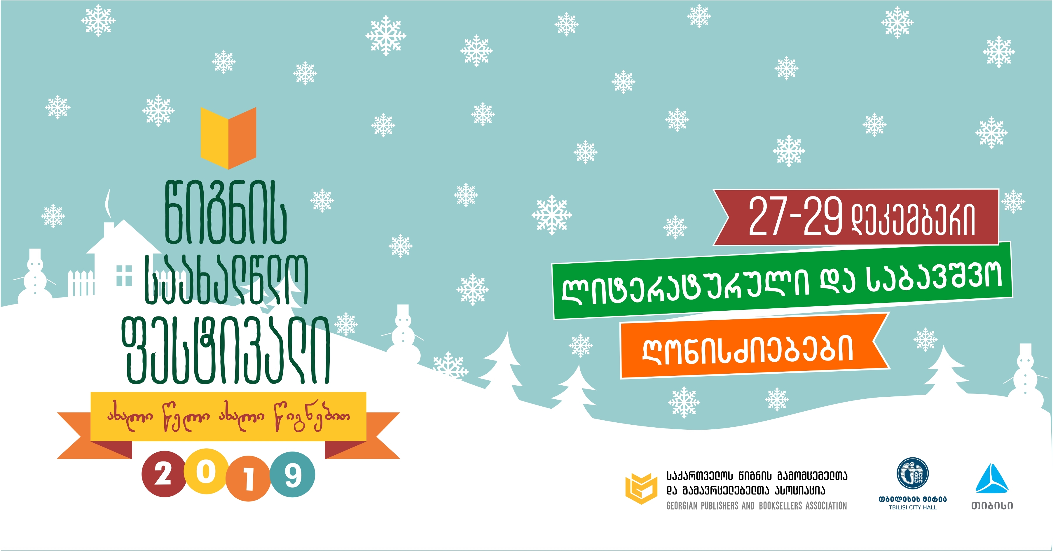 27-29 დეკემბერს, თბილისის მერიის მხარდაჭერით და საქართველოს წიგნის გამომცემელთა და გამავრცელებელთა ასოციაციის ორგანიზებით, საქართველოს პარლამენტის ეროვნულ ბიბლიოთეკაში თბილისის წიგნის საახალწლო ფესტივალი 2019 გაიმართება, რომელზეც სიახლეებითა და ფასდაკლებით წარმოდგენილი იქნებიან ქართველი გამომცემლები.