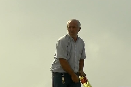 ხორბლის გადამზიდავი, რომელმაც პროტესტი უკიდურეს ფორმას მიმართა, შენობის სახურავზეა ასული და ამბობს, რომ იმ შემთხვევაში, თუ ფინანასთა მინისტრი ადგილზე არ მივა, თავს დაიწვავს.