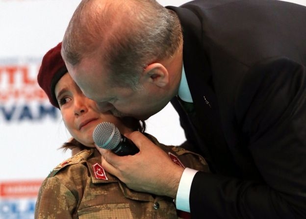 თურქეთის პრეზიდენტი რეჯეფ თაიფ ერდოღანი კრიტიკის ობიექტი გახდა მას შემდეგ, რაც მან სამხედრო ფორმაში ჩაცმულ გოგონას უთხრა, რომ იგი დიდებას მოიხვეჭდა, თუკი ბრძოლის დროს იქნებოდა მოკლული.
