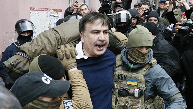 საქართველოს ყოფილი პრეზიდენტი, ოდესის ოლქის ყოფილი გუბერნატორი მიხეილ სააკაშვილი მას შემდეგ, რაც მის სახლთან სპეცრაზმი მივიდა, სახლში კი, სამართალდამცავებმა ჩხრეკა დაიწყეს, შენობის სახურავზე ავიდა და გადმოხტომით იმუქრებოდა.