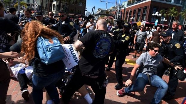 კალიფორნიის შტატის ქალაქ სან-დიეგოში, აშშ-ს პრეზიდენტობის “რესპუბლიკელი” კანდიდატის მომხრეები და მოწინააღმდეგეები ერთმანეთს დაუპირისპირდნენ. ინციდენტის შედეგად 18 ადამიანი დაშავდა. ინფორმაციას აღნიშნულის შესახებ BBC ავრცელებს.