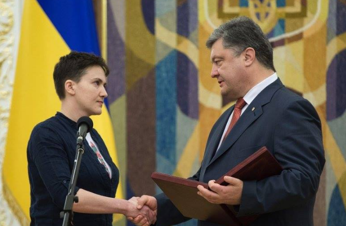 უკრაინის პრეზიდენტმა, პეტრო პოროშენკომ ნადეჟდა სავჩენკო „ოქროს ვარსკლავის“ ორდენით დააჯილდოვა და „უკრაინის გმირის“ წოდება მიანიჭა.