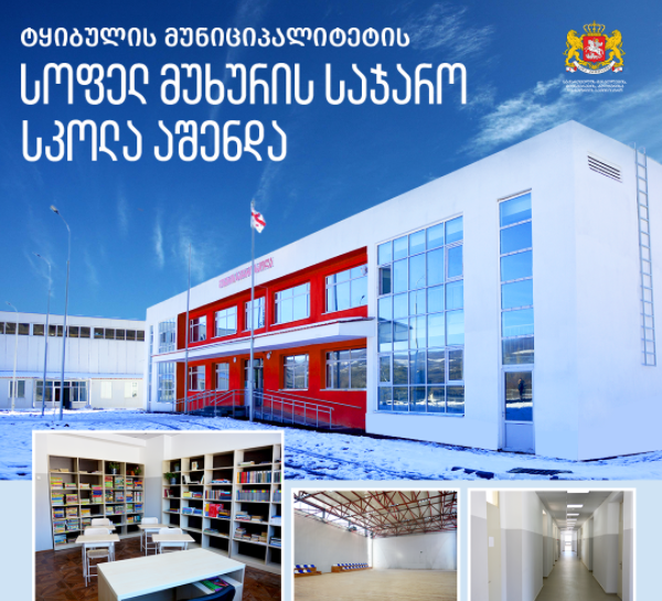 ტყიბულის მუნიციპალიტეტის სოფელ მუხურში საჯარო სკოლა აშენდა. 120 მოსწავლეზე გათვლილი შენობა სრულად შეესაბამება თანამედროვე სტანდარტებს.