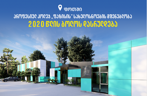 ფოთის კოლეჯ „ფაზისის“ თანამედროვე სტანდარტების შესაბამისი ოთხი ახალი სახელოსნოს მშენებლობა 2020 წლის ბოლოს დასრულდება.