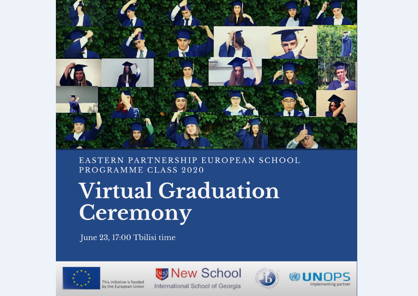 აღმოსავლეთ პარტნიორობის ევროპული სკოლის პროგრამას პირველი კურსდამთავრებულები ჰყავს. ვირტუალურ გამოსაშვებ ცერემონიაზე, რომლის მასპინძელიც პროგრამის პარტნიორი - „საქართველოს საერთაშორისო სკოლა - ახალი სკოლა” იყო, სიტყვით გამოვიდნენ საქართველოს განათლების, მეცნიერების, კულტურისა და სპორტის მინისტრი, მიხეილ ჩხენკელი, ევროკომისარი საბიუჯეტო და ადმინისტრირების საკითხებში, იოჰანეს ჰანი, ევროკომისარი ევროკავშირის გაფართოებისა და სამეზობლო პოლიტიკის საკითხებში, ოლივერ ვარჰელი, იუნოპსის გენერალური მდივანი და აღმასრულებელი დირექტორი, გრეტა ფარემო და სხვა ოფიციალური პირები. ღონისძიება ვირტუალური პლატფორმის - ზუმის საშუალებით ჩატარდა და მას 1000-მდე სტუმარი ესწრებოდა.