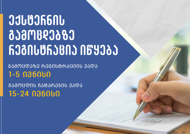საქართველოს განათლების, მეცნიერების, კულტურისა და სპორტის სამინისტრომ მე-12 კლასის პროგრამის ექსტერნატის ფორმით დაძლევის მსურველთათვის რეგისტრაციისა და გამოცდების ჩატარების ვადები განსაზღვრა. მსურველი პირები გამოცდაზე დარეგისტრირებას 2020 წლის 1 ივნისიდან 5 ივნისის ჩათვლით შეძლებენ, ხოლო გამოცდები 15 ივნისიდან 24 ივნისის ჩათვლით ჩატარდება. გამოცდაზე გასვლის უფლება აქვს პირს იმ შემთხვევაში, თუ მისი ასაკი შეესაბამება ან აღემატება მე-12 კლასის მოსწავლეთა ასაკობრივ ჯგუფს და მას დაძლეული აქვს წინმსწრები კლასის საგანმანათლებლო პროგრამა.