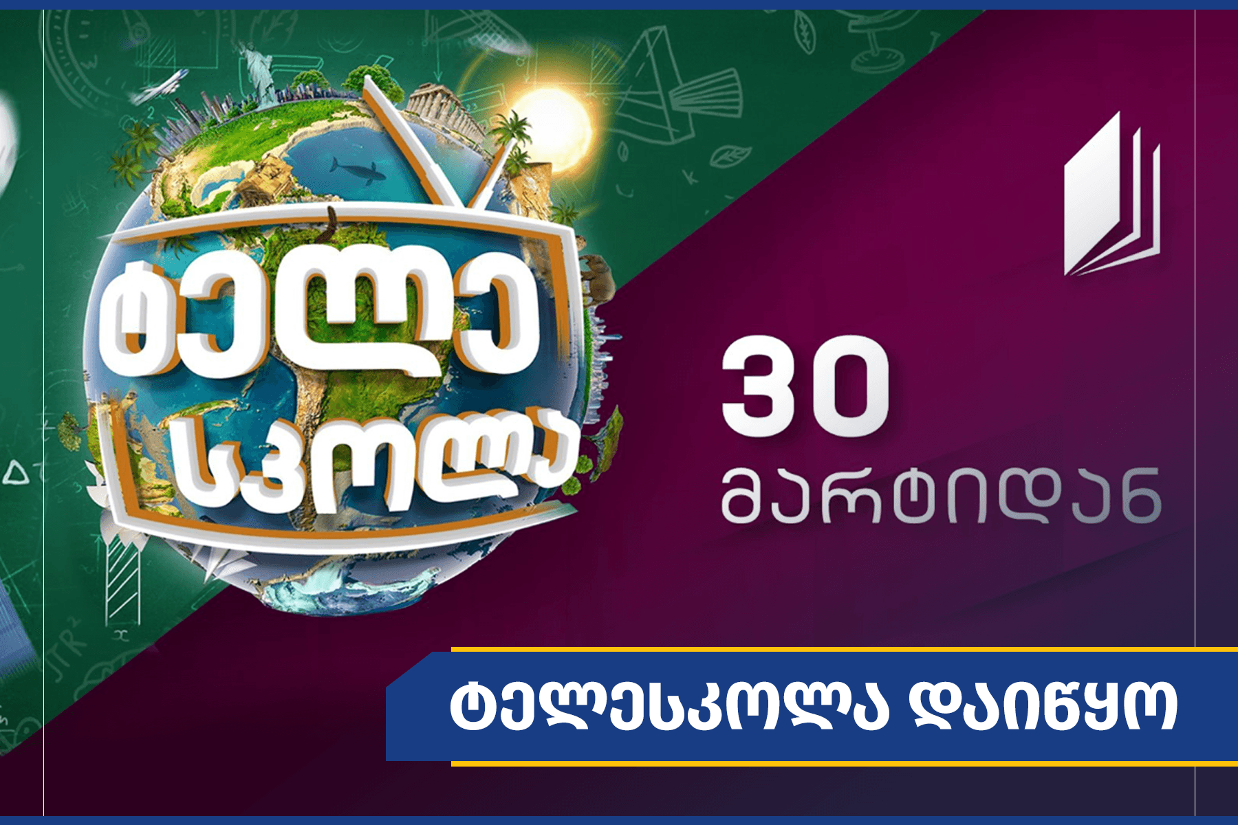დღეს, 30 მარტს, პროექტი „ტელესკოლა“ დაიწყო, რომელსაც საქართველოს განათლების, მეცნიერების, კულტურისა და სპორტის სამინისტრო საქართველოს პირველ არხთან თანამშრომლობით ახორციელებს. პროექტი ყველა მოსწავლეს, განურჩევლად იმისა, აქვს თუ არა წვდომა ინტერნეტთან, საშუალებას მისცემს, ნახოს საინტერესო გაკვეთილები ყველა საგანში.