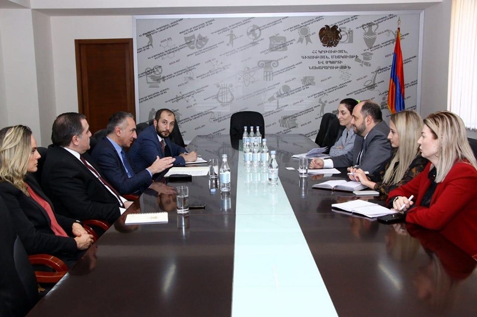 ერევანში სამუშაო ვიზიტით მყოფმა საქართველოს განათლების, მეცნიერების, კულტურის და სპორტის მინისტრმა მიხეილ ბატიაშვილმა და სომხეთის განათლების, მეცნიერების, კულტურისა და სპორტის მინისტრმა არაიკ არუთიუნიანმა ორ ქვეყანას შორის თანამშრომლობის საკითხები და მიმდინარე რეფორმები განიხილეს.