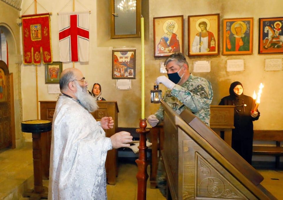 მაცხოვრის საფლავზე გადმოსული წმინდა ცეცხლი საქართველოს თავდაცვის ძალების სამხედრო პოლიციის წარმომადგენლებმა სამების საკათედრო ტაძრიდან თავდაცვის სამინისტროს ტერიტორიაზე მდებარე მთავარანგელოზთა დასის სახელობის ტაძარში მიიტანეს.