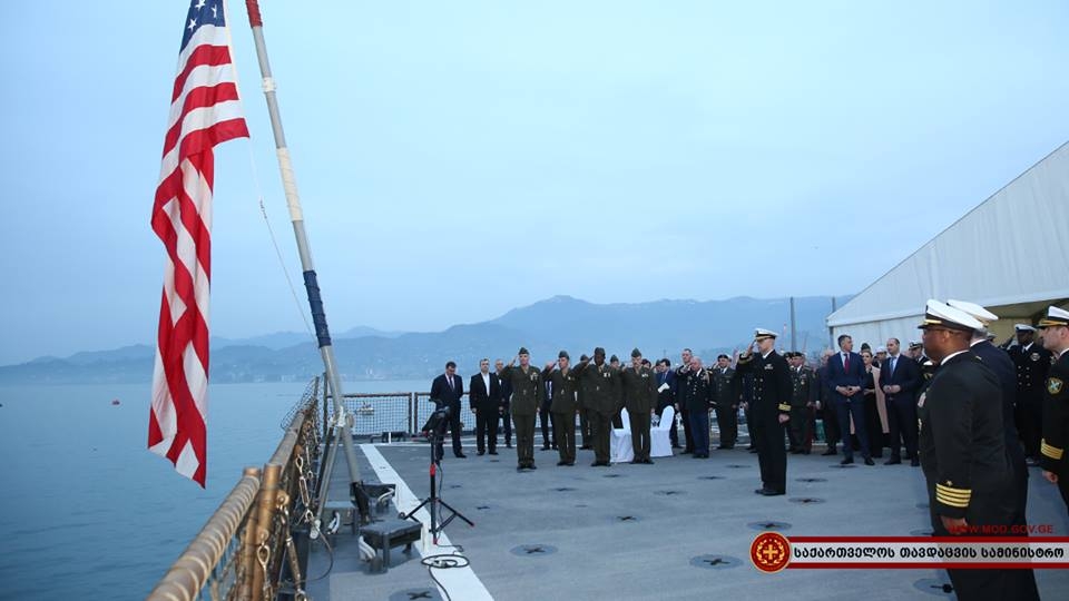 საქართველოს თავდაცვის მინისტრი ლევან იზორია ბათუმში ამერიკის საზღვაო ძალების სადესანტო ხომალდზე გამართულ ოფიციალურ მიღებას დაესწრო.