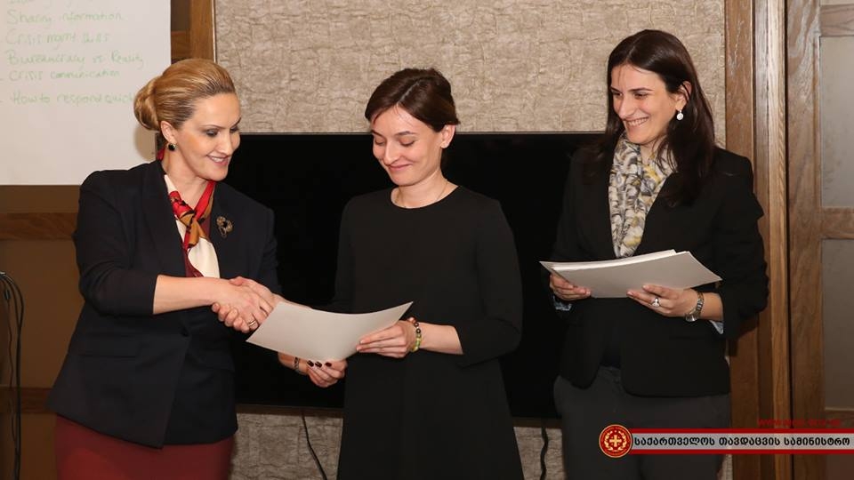 თავდაცვის ინსტიტუციური აღმშენებლობის (DIB) სკოლაში „კრიზისების მართვისა და კრიზისულ სიტუაციებში კომუნიკაცია საქართველოს კონტექსტში“ ტრენინგი დღეს ოფიციალურად დასრულდა. კურსი საქართველოს თავდაცვის მინისტრის პირველმა მოადგილემ ლელა ჩიქოვანმა და ნიდერლანდების სამეფოს ელჩმა საქართველოში იოანეს დუმამ დახურეს.