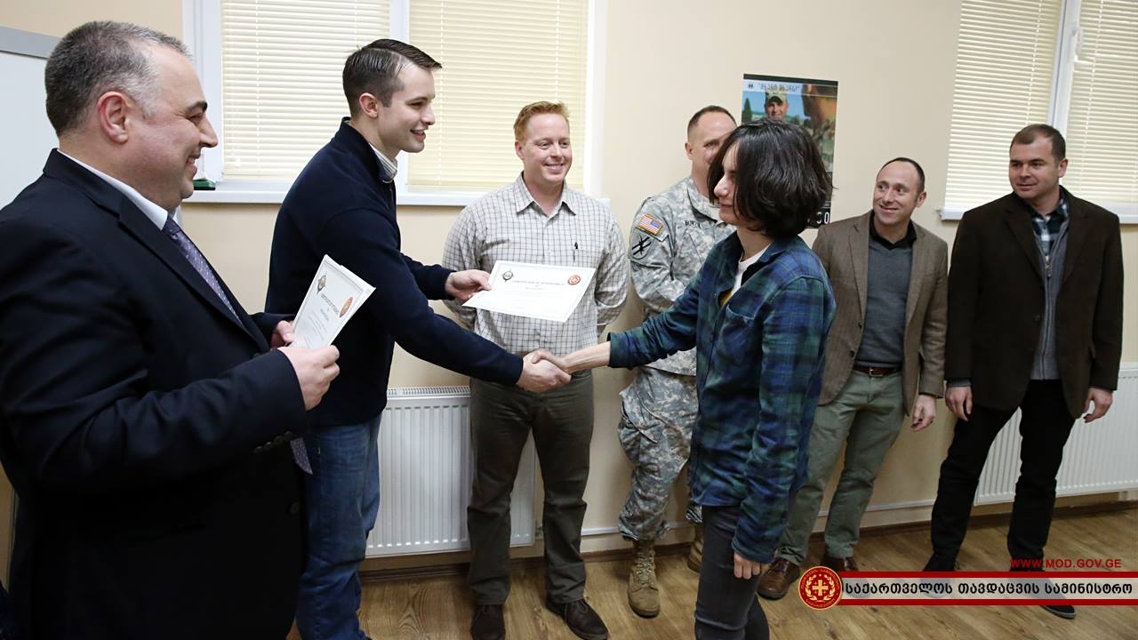 კურსის დასრულებისადმი მიძღვნილ საზეიმო ცერემონიალს საქართველოს შეიარაღებული ძალების გენერალური შტაბის უფროსი, გენერალ-მაიორი ვახტანკ კაპანაძე და წვრთნებისა და სამხედრო განათლების სარდალი, პოლკოვნიკი მალხაზ მაკარაძე დაესწრნენ.