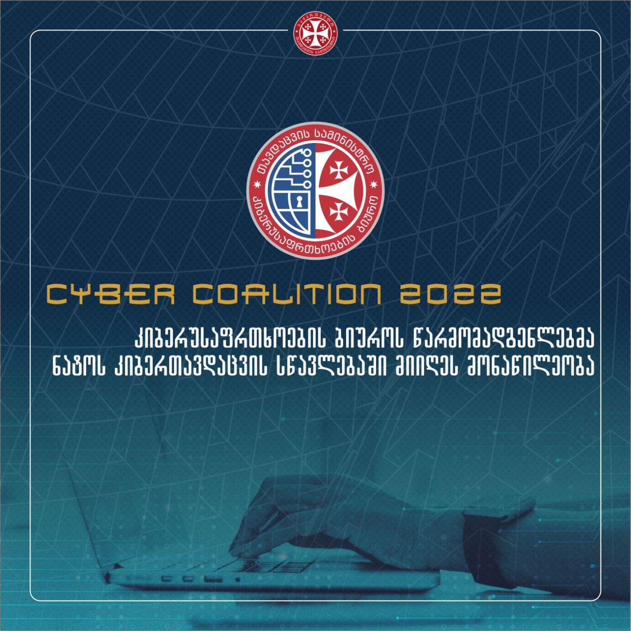 საქართველოს თავდაცვის სამინისტროს სსიპ კიბერუსაფრთხოების ბიუროს წარმომადგენლებმა ნატოს კიბერთავდაცვის სწავლებაში მიიღეს მონაწილეობა. „Cyber Coalition 2022“ მსოფლიოში კიბერსფეროს ერთ-ერთი ყველაზე მასშტაბური სწავლებაა, რომელიც ნატოს წევრი და პარტნიორი ქვეყნებიდან ათასამდე მონაწილეს აერთიანებს.